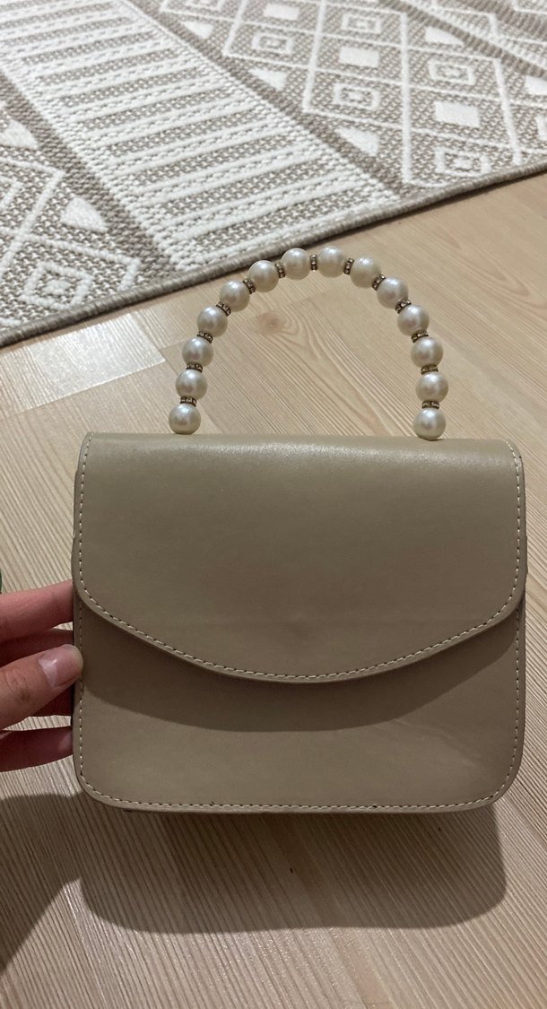 Boncuklu kulpu ve düz yüzeyi ile bej deri kadın çanta. Klasik zarafeti bohem Paris tarzıyla buluşturur, günlük kullanıma uygundur.