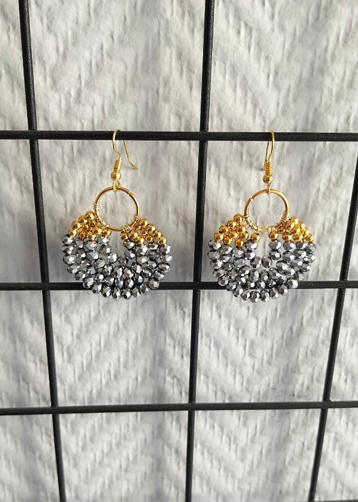 Gri boncuklu küpe