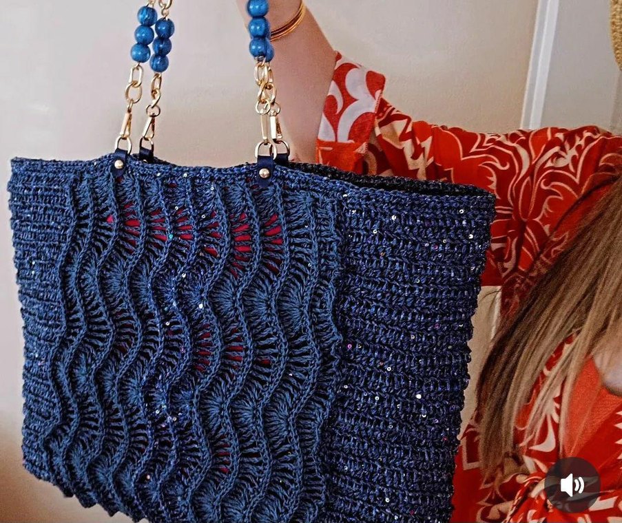 Boncuklu sapları ve renkli nakış desenleriyle mavi örgü kadın çantası, bohem tarzını yansıtarak günlük kullanıma uygundur.