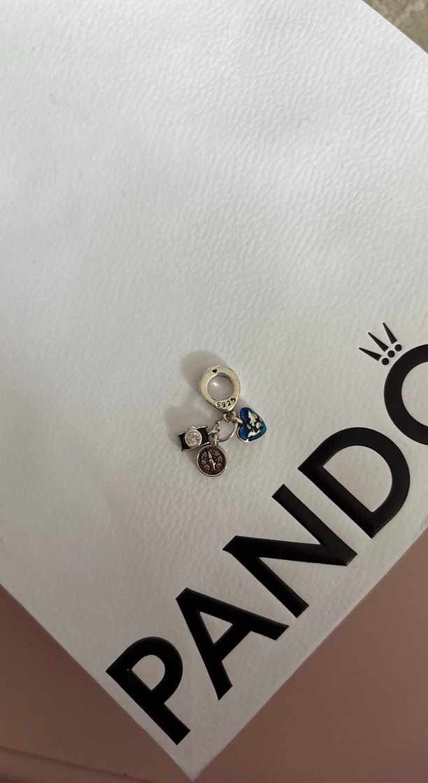 Boncuklu, mavi ve gri baskılı detaylara sahip kadın charm. Sokak stili ve rock punk havasında, romantik buluşmalar ve Paris tarzına uygun.