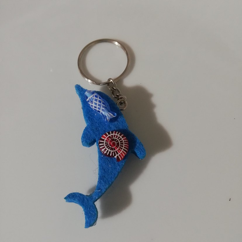 Boncuklarla süslenmiş mavi yunus figürlü bohem tarzı anahtarlık.