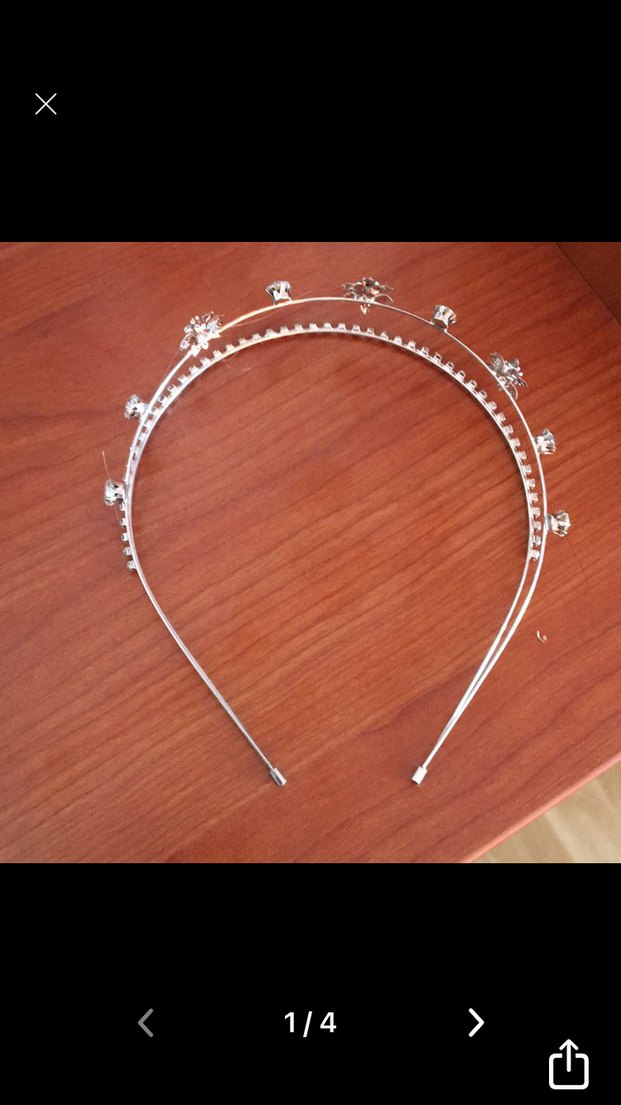 Parlak bej boncuklarla süslenmiş metal saç aksesuarı, sade ve minimal bir tarz sunar. Hafif eski moda bir görünümü vardır. ✨