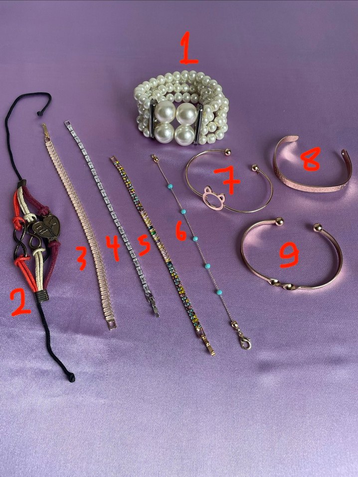 ❌FİYAT TEMSİLİ❌3,4,5,6,7,8,9 SIFIR ÜRÜNLER. Diğerleri temiz. Hepsinin tekli hali sayfamda ekli. pembe (3) ➡️ 19,5cm / renkli (5)➡️ 18 cm / gümüş (4) ➡️ 19,5cm. ‼️ Saatçiye gidip parçalarını eksiltip bileğinize göre ayarlayabilirsiniz ‼️ (3,4,5➡️Ürünler sıfırdır Irak’tan hediye olarak alındı. Kaliteliler.) ⚠️ (7)➡️ Genişliği 7,4cm ⚠️ (8)➡️ Genişliği 6cm⚠️ (9)➡️Genişliği 7,3cm.
