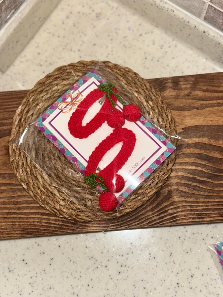 Renkli nakış detaylı kırmızı boncuklu çocuk saç tokaları. Bohem tarzda neşeli bir görünüm sağlar.