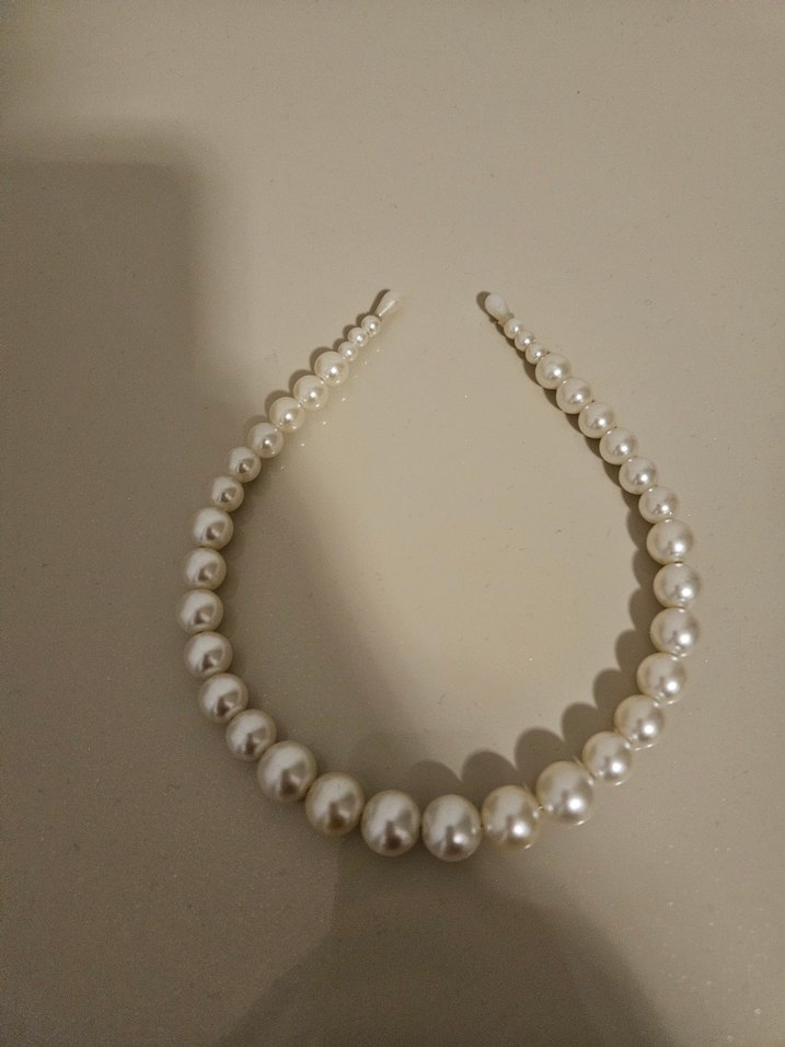 Örgü kumaştan yapılmış, boncuk detaylı beyaz saç aksesuarı. Paris tarzı, bohem ve yenilikçi bir görünüm sunar.