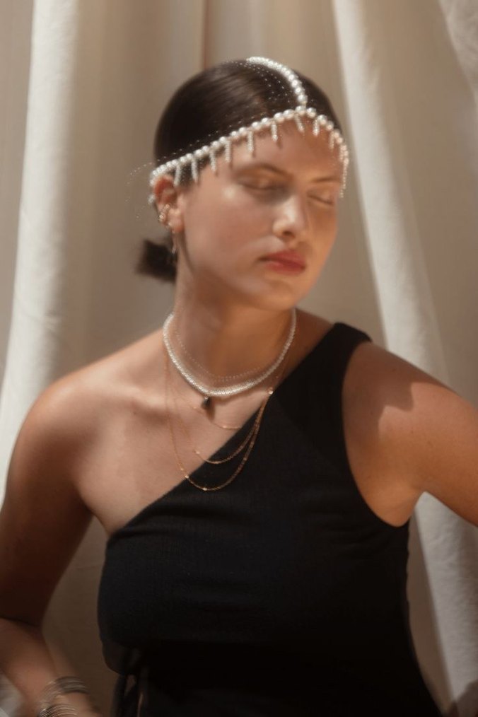 Boncuklu Parlak Siyah Avant-Garde Saç Aksesuarı