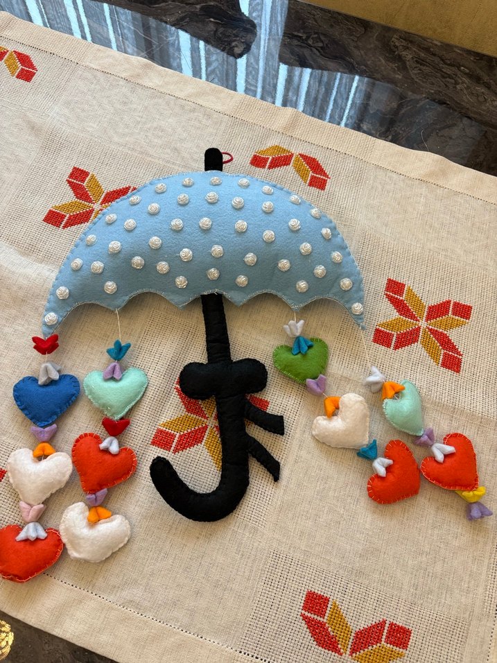 Bu kadın şemsiyesi, boncuk detaylı pastel çok renkli tasarımıyla bohem ve rahat bir tarz sunar. Kalp süslemeli sapı ve dalgalı kenarları vardır. ☂️