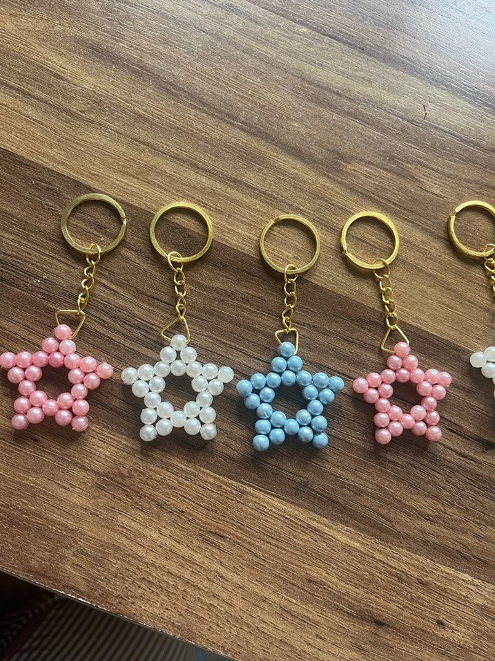 Pastel renklerde, boncuklu yıldız şeklinde, bohem tarzda ve minimalist tasarımlı anahtarlıklar. Anahtarlarınıza zarif bir dokunuş katıyor.