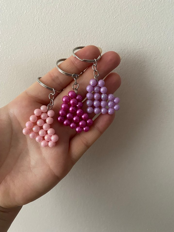 Pastel pembesi boncuklu, bohem tarzda, minimalist kalp şeklinde anahtarlıklar. Anahtarlarınıza retro hippie dokunuşu katar.