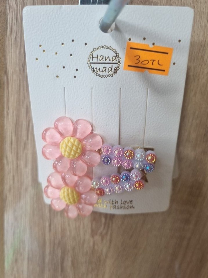 Pastel pembe çiçekli toka ve renkli boncuklu toka seti, bohem tarz için uygun. El yapımı, özenle hazırlanmıştır.