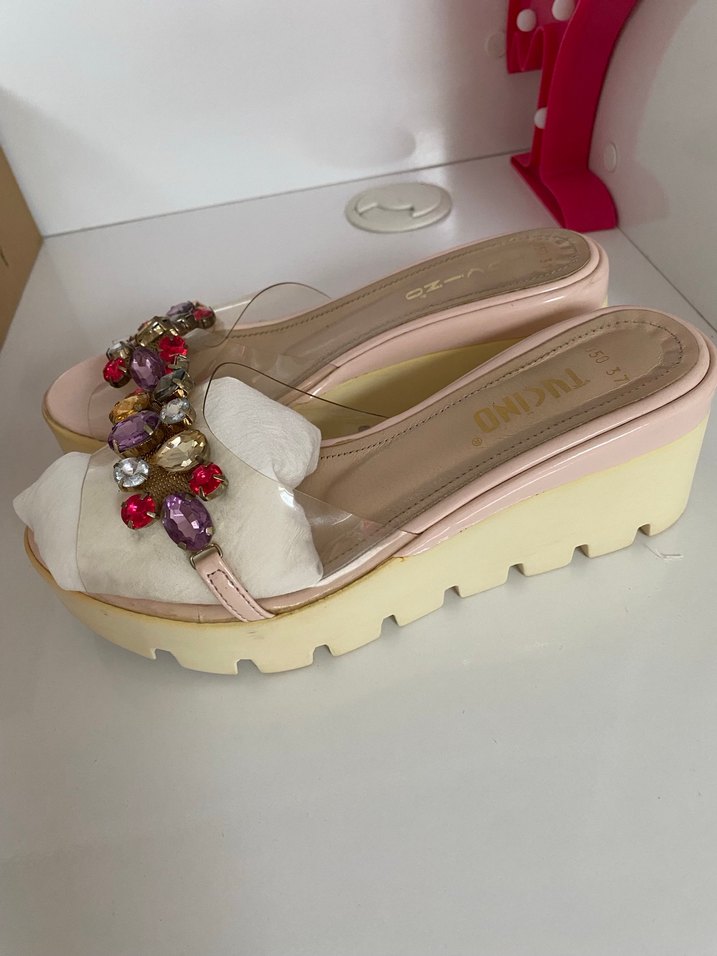 Boncuklu Pembe Dolgu Topuk Terlik