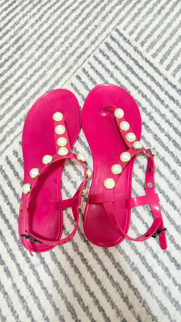 Pembe renkte, boncuk detaylı ve bağlama desenli kadın sandaletleri, pop kültür tarzını renkli bir görünümle sunar.