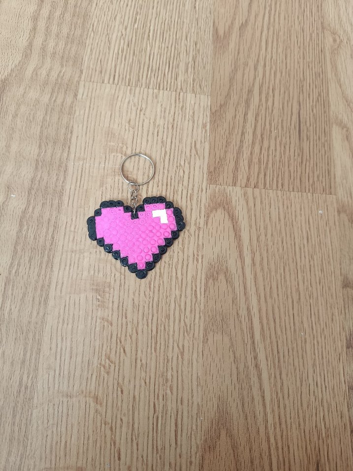 Boncuklardan yapılmış, renkli pembe kalp şeklinde, goth ve grunge punk tarzını yansıtan rock punk havasında anahtarlık.