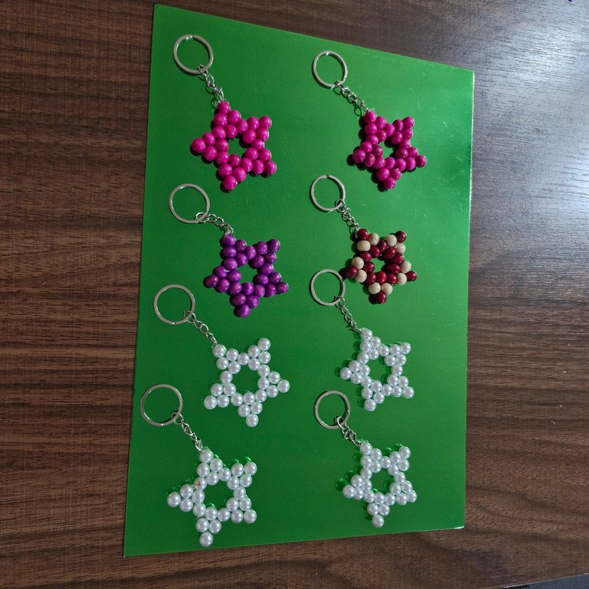 Renkli boncuklarla yapılmış, bohem tarzda minimalist yıldız şekilli anahtarlıklar. tanesi 20 toplu olarak elimde mevcut. iade değişim yoktur. istenilen renkte şipariş alınır