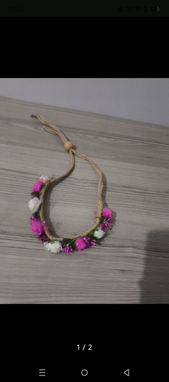 Boncuklu ve çiçek detaylı, renkli örme bohem saç aksesuarı. Ahşap boncuklu ayarlanabilir kapanışa sahiptir.
