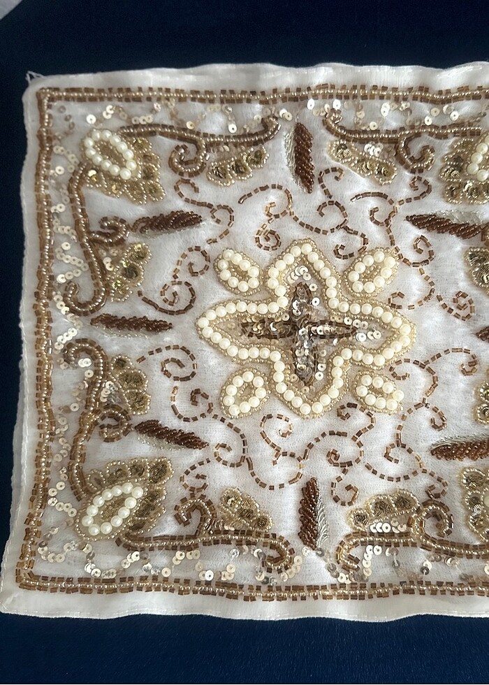 Boncuklu salon takımı.2 küçük,2 büyük kare ,1 runner ve 1 büyük