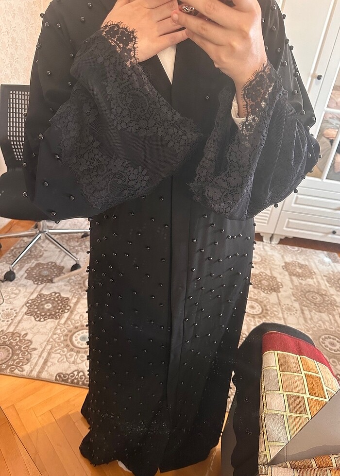 Boncuklu Siyah Abaya