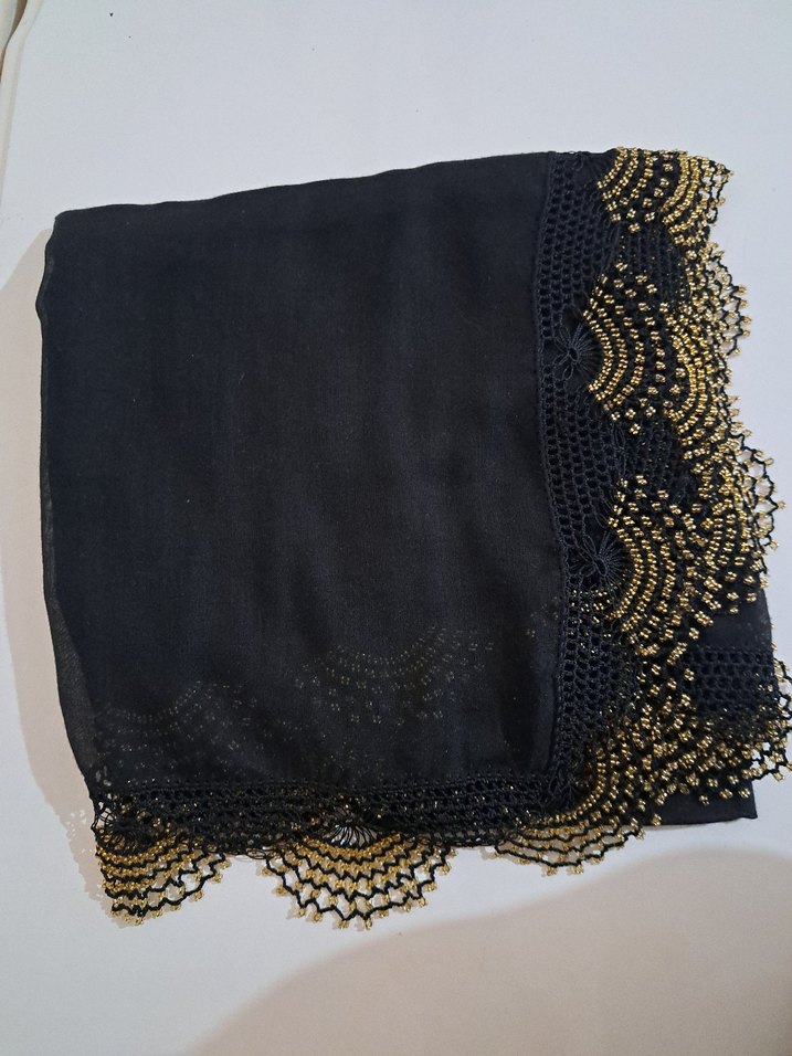 Siyah, el emeği boncuklu tığ işi 4 kenarlı