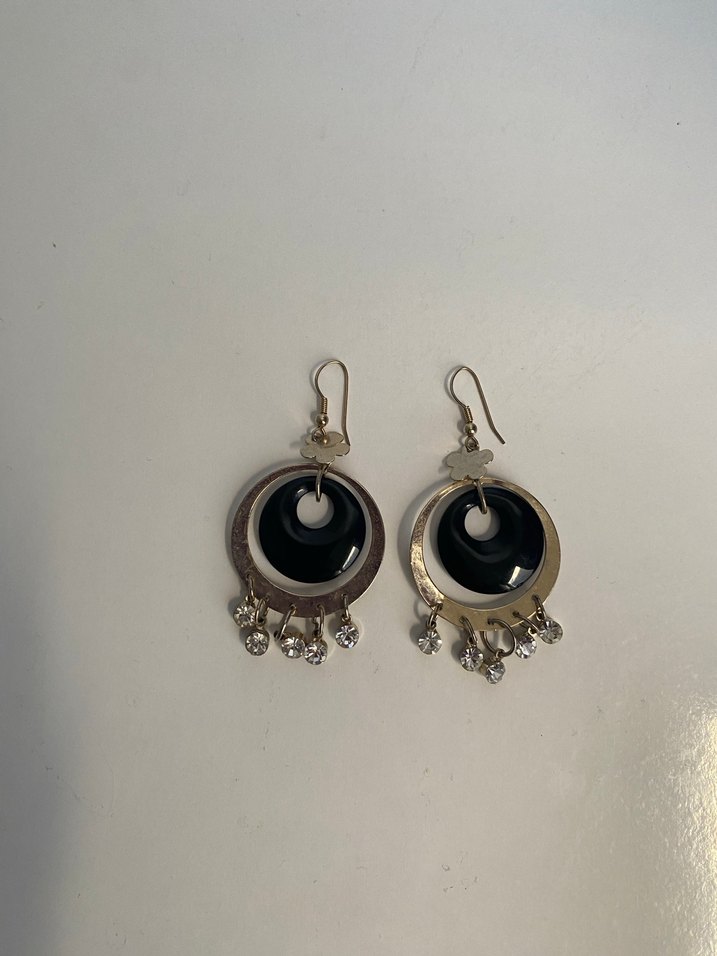 Kısa boylu, etnik desenli ve boncuk detaylı siyah küpeler, romantik akşamlar için uygundur. Bohem tarzda, sallanan parçalar içerir.