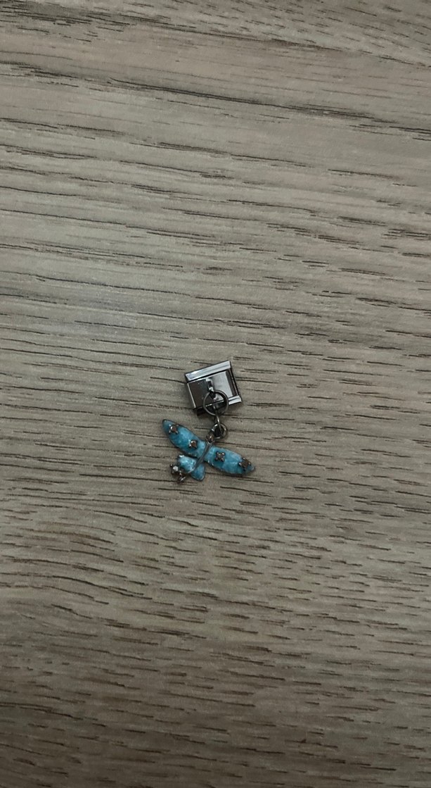 Turkuaz böcek figürlü, boncuklu ve gri tonlu kadın charm, bohem tarzı için uygun.