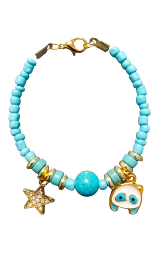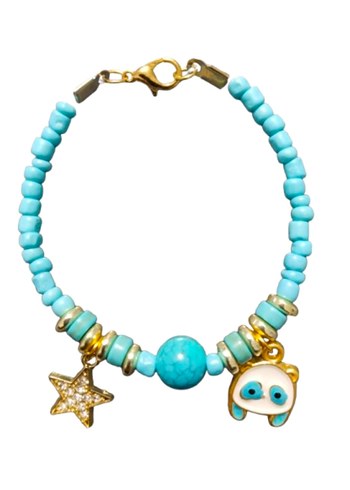 Boncuklu ve nakış detaylı turkuaz renkli bohem bileklik, altın renkli yıldız ve baykuş figürleriyle süslenmiştir. Günlük kullanım için uygundur. el yapımı sıfır üründür.bileklik uzunluğu 17 cm.dir.
