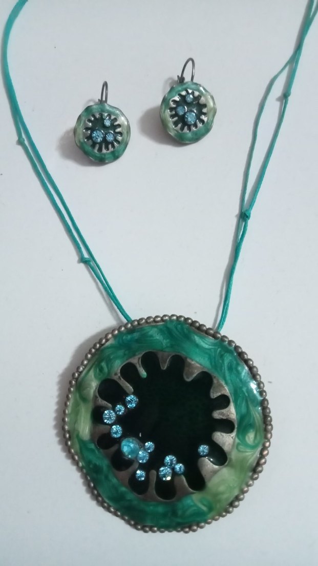 Bohem tarzı kısa turkuaz boncuklu kolye, işlemeli detaylara sahip ve uyumlu küpelerle tamamlanmıştır. Günlük kullanım için uygundur.