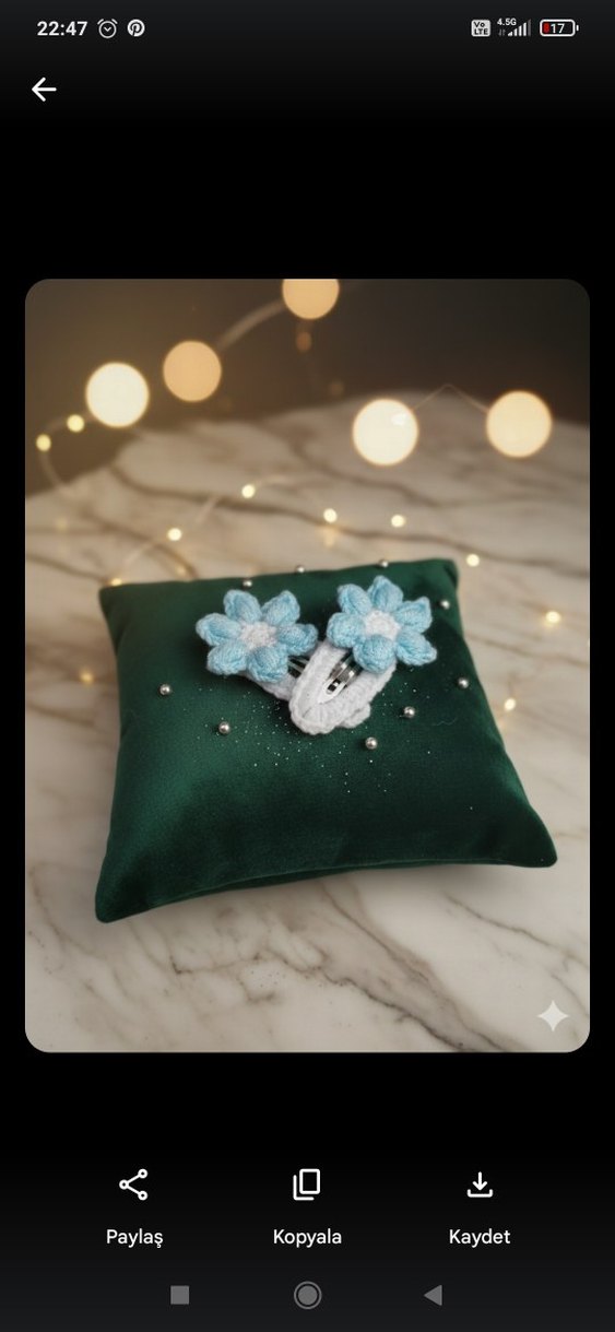 Boncuklu Turkuaz Çiçekli Çocuk Toka