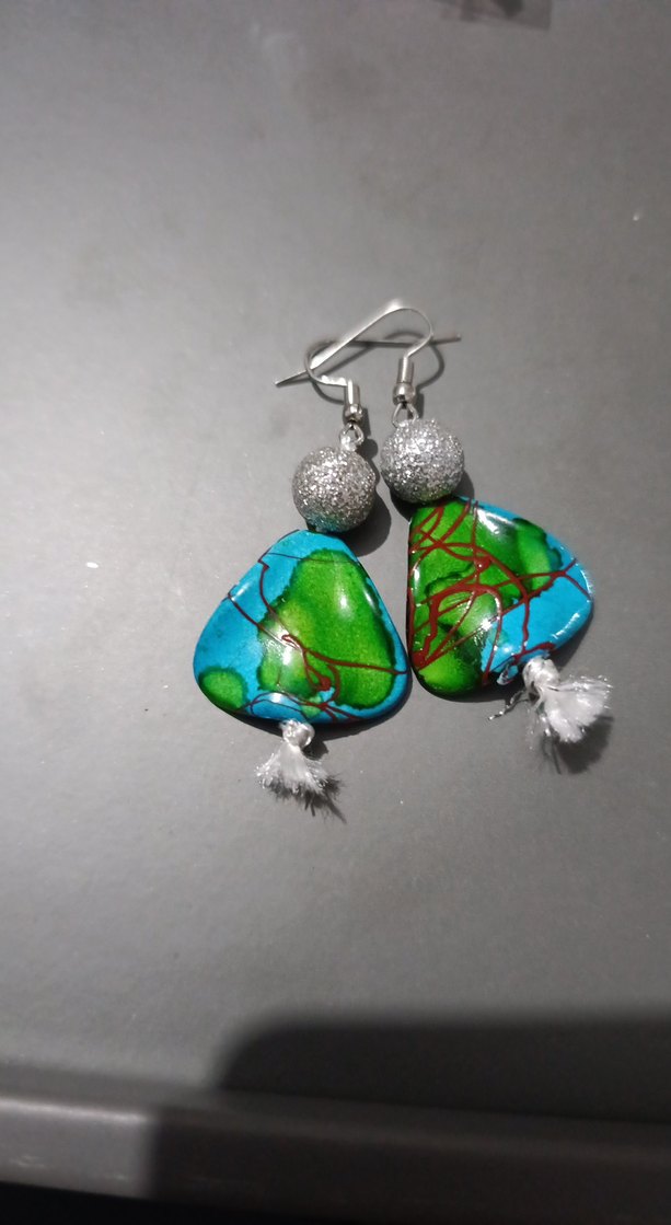 Boncuklu, turkuaz renkli desenli mini küpeler, bohem tarzda parti için uygun avant-garde tasarıma sahip. Günlükte kullanılabilir.