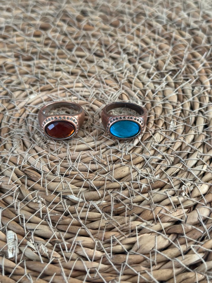 Boncuklu Turkuaz ve Kahverengi Yüzükler