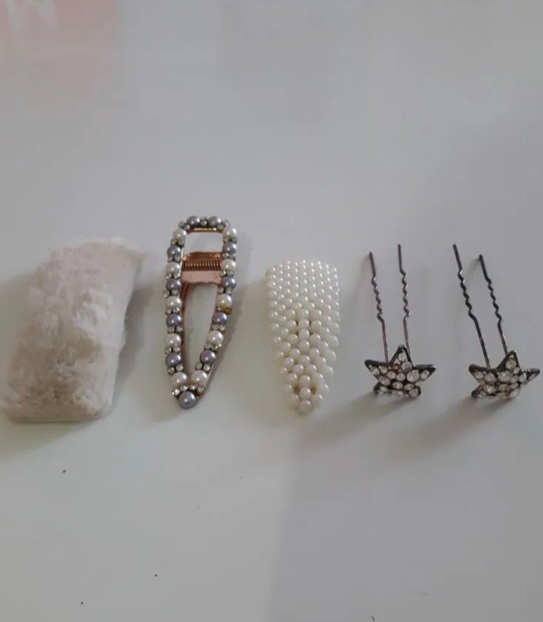 Boncuklu ve metal detaylı, vintage tarzda beyaz tonlarında kadın saç aksesuarları seti, klips ve yıldız şeklinde tokalar içerir. ✨ Yıldız olan bir kaç taşı yoktur.