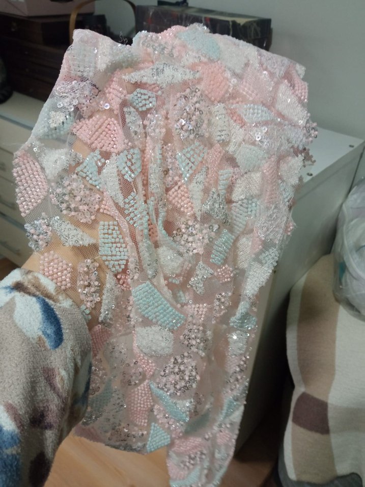 boncuklu ve pullu tül parçaları