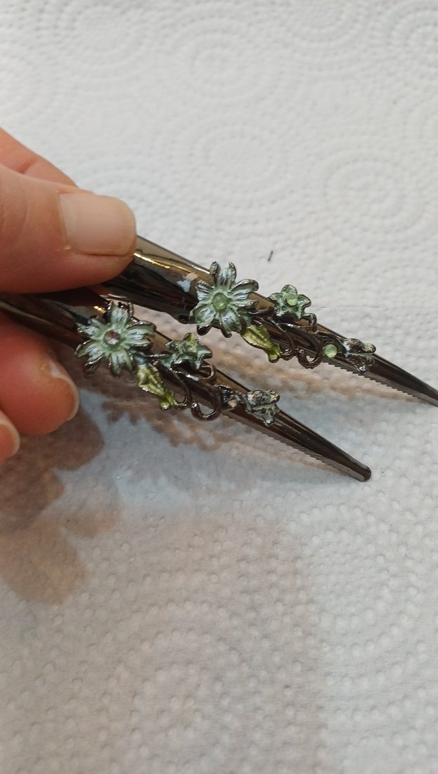 Koyu bej renkte, cam boncuklarla süslenmiş çiçek desenli vintage bohem tarzı cok şik abiyelerin uzerinde ozel günlerde kadın saç tokası.