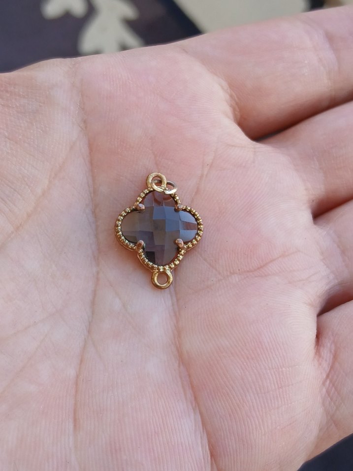 Boncuk işlemeli, faset kesim gri vintage kadın charm. Bohem tarzda, romantik akşamlar için uygun küçük aksesuar.