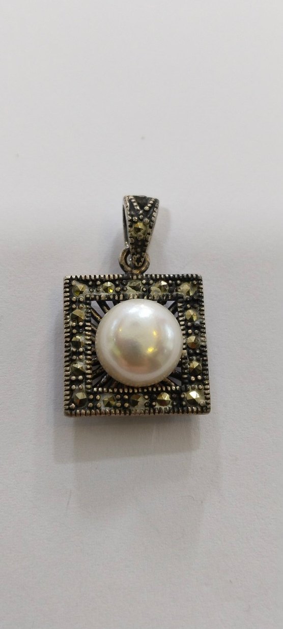 Boncuklu desenli kare vintage kolye ucu, ortasında beyaz inci bulunur, günlük kullanım için bohem tarzda uygundur.✨ ➡️925 AYAR GÜMÜŞ ➡️ AĞIRLIK:5.27➡️SIFIR ÜRÜN ➡️ GARANTİ SERTİFİKASI