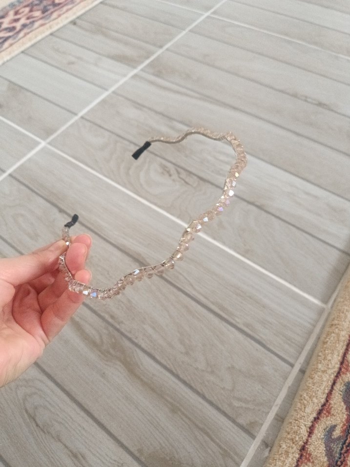 Boncuklarla süslenmiş, yılan desenli bej taç, minimalist ve bohem tarzda günlük kullanım için uygun.