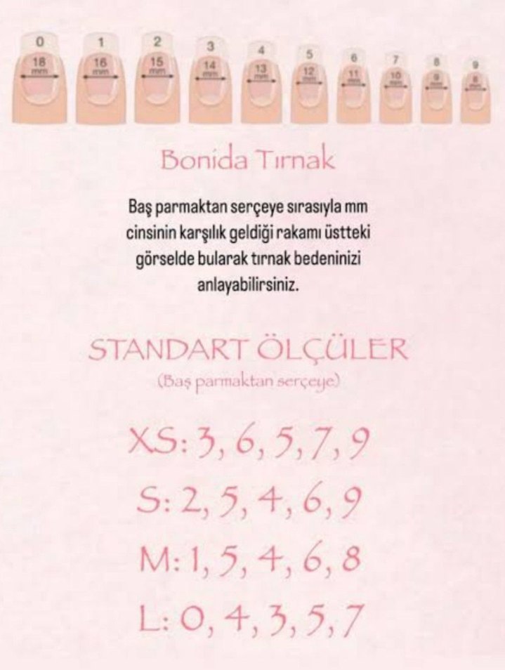 Bonida Pastel Bej Tırnak Ölçü Tablosu
