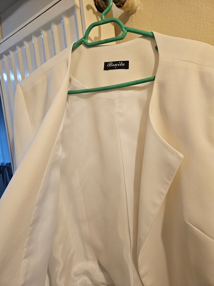 Bonila markalı, düğmeli, kolsuz, normal boy midi blazer. Notch yaka ve düz, desen içermeyen tasarıma sahip, iş ortamına uygun.Krem rengi 1 kere kullanıldı FIRSAT ÜRÜNÜ