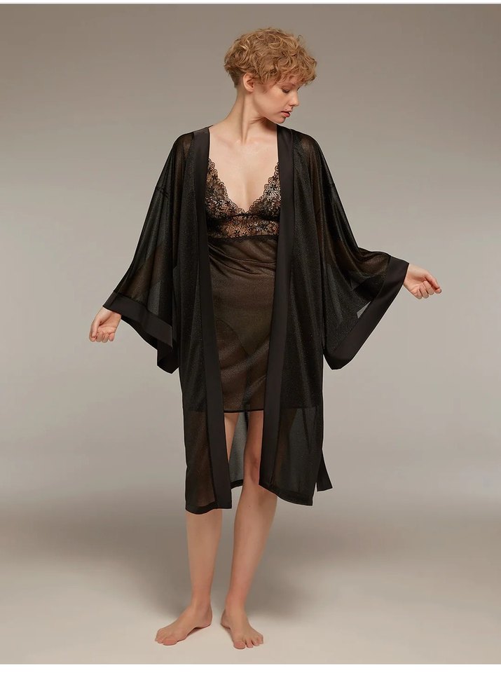 çeyiz seti 6 parça Siyah uzun kollu midi pijama takımı, düz renk ve düzenli kesimle, kollarda dantel detayları bulunan parlak dokusuyla dikkat çeker.