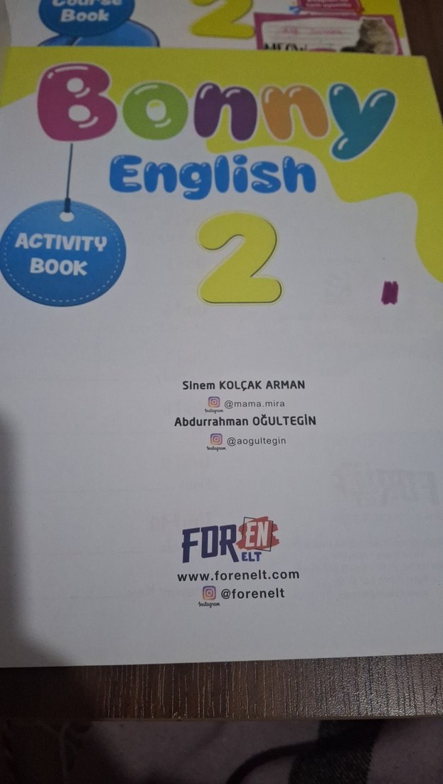Bonny English 2, ilkokul öğrencileri için hazırlanmış İngilizce etkinlik kitabıdır. Sinem Kolçak Arman ve Abdurrahman Öğültegin tarafından hazırlanmıştır. Yer yer kullanılmış sayfaları vardır.