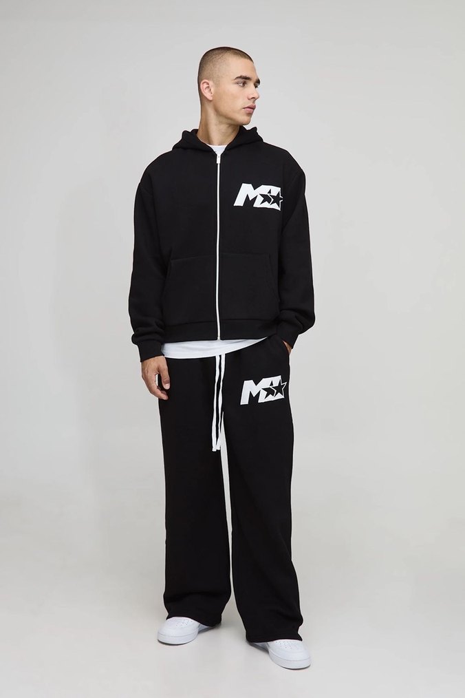 Siyah, rahat kesim, yumuşak kumaştan yapılmış, grafik detaylı erkek eşofman altı. Günlük kullanım için uygundur.