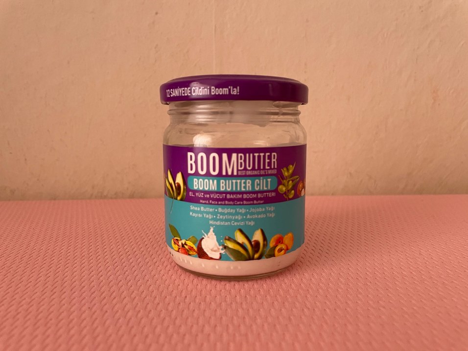 Ürünün %70’i doludur Eylül sonu 2025 kadar tarihi vardır o yüzden uygun fiyata koydum Boom Butter, shea yağı, buğday yağı, jojoba yağı, kayısı yağı, zeytinyağı, avokado yağı ve hindistan cevizi yağı içeren cilt ve vücut bakım kremidir.