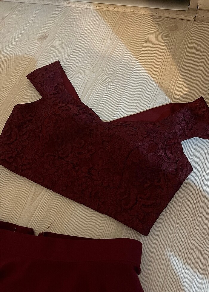 Bordo 2 Parça Dantelli Mezuniyet Elbisesi