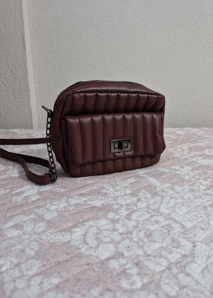 isiktan dolayi fotografta biraz kahverengi duruyor ama rengi tam bordo. askisi ayarlanabiliyor.