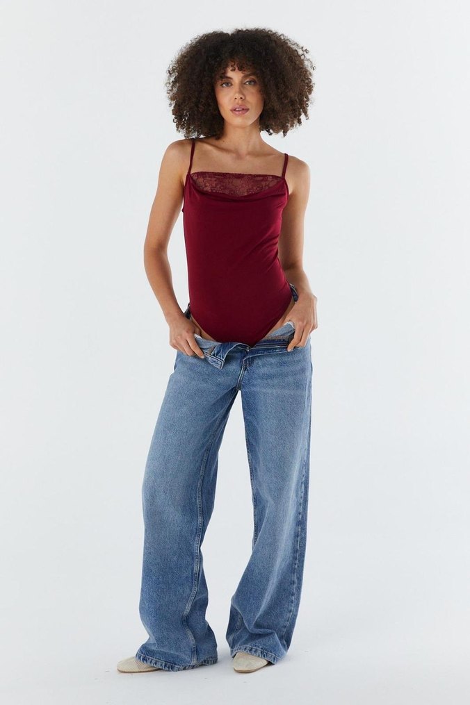 Günlük kullanım için bordo, ince askılı ve dantel detaylı