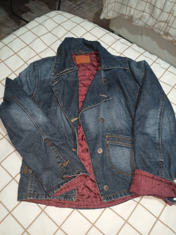 Kadınlar için düğmeli, bordo astarlı kot ceket. Normal kesim, uzun kollu, koyu renk kot kumaş ve keskin yakalı, günlük kullanım için uygun. kusuru yoktur tertemizdir. normalde yaka kısmında bordo kürkü vardı ama bulamadım bulursam onu da göndericem
