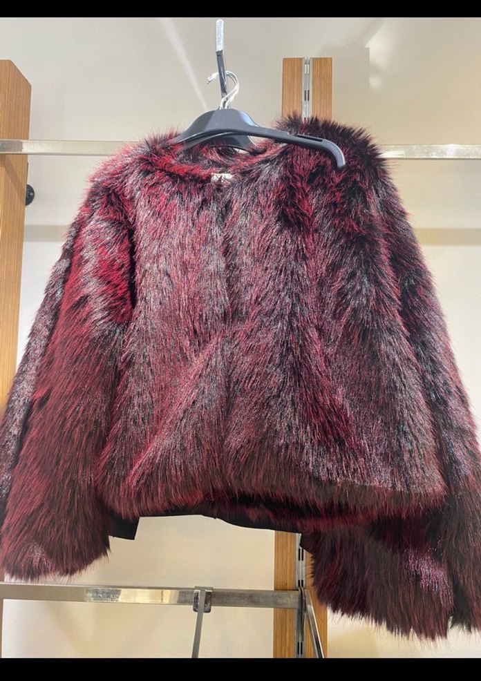 Bordo bağlama desenli suni kürk midi ceket, uzun kollu ve kesik yaka detaylıdır. Rahat kesimi ve midi boyu günlük kullanıma uygundur.