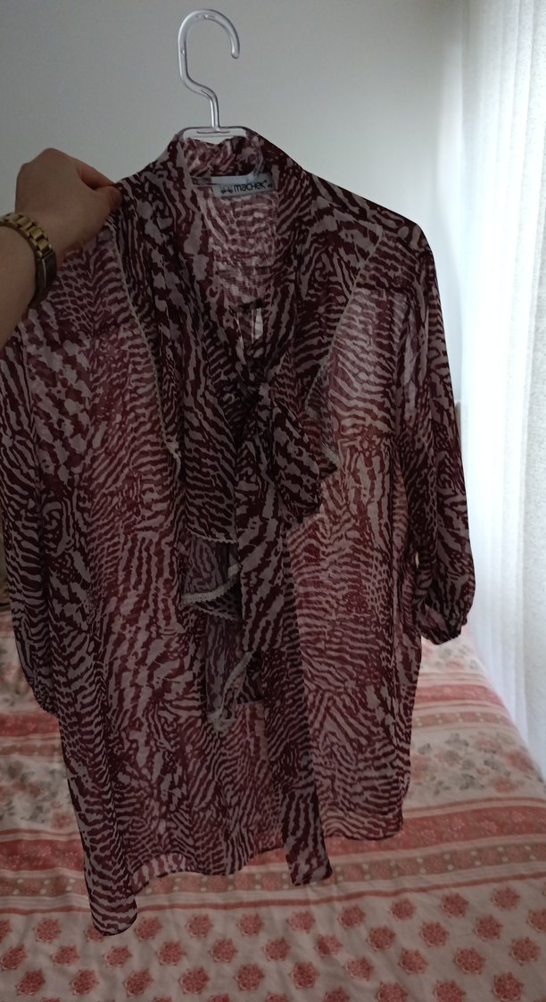 Bordo renkte, bağlamalı ve salaş kesim kadın bluz. Uzun kollu, halter yaka ve yumuşak dokulu kumaştan yapılmıştır. Bohem tarz için uygundur. Şifondur.
