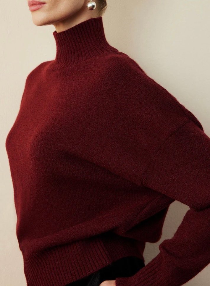 Bordo renkli kazak, balıkçı yaka ve uzun kolludur. Salaş kesimiyle rahat ve çağdaş bir tarz sunar. Günlük kullanım için sade ve şık bir tercihtir. Etiketli ürün hiçbir deformesi yoktur.