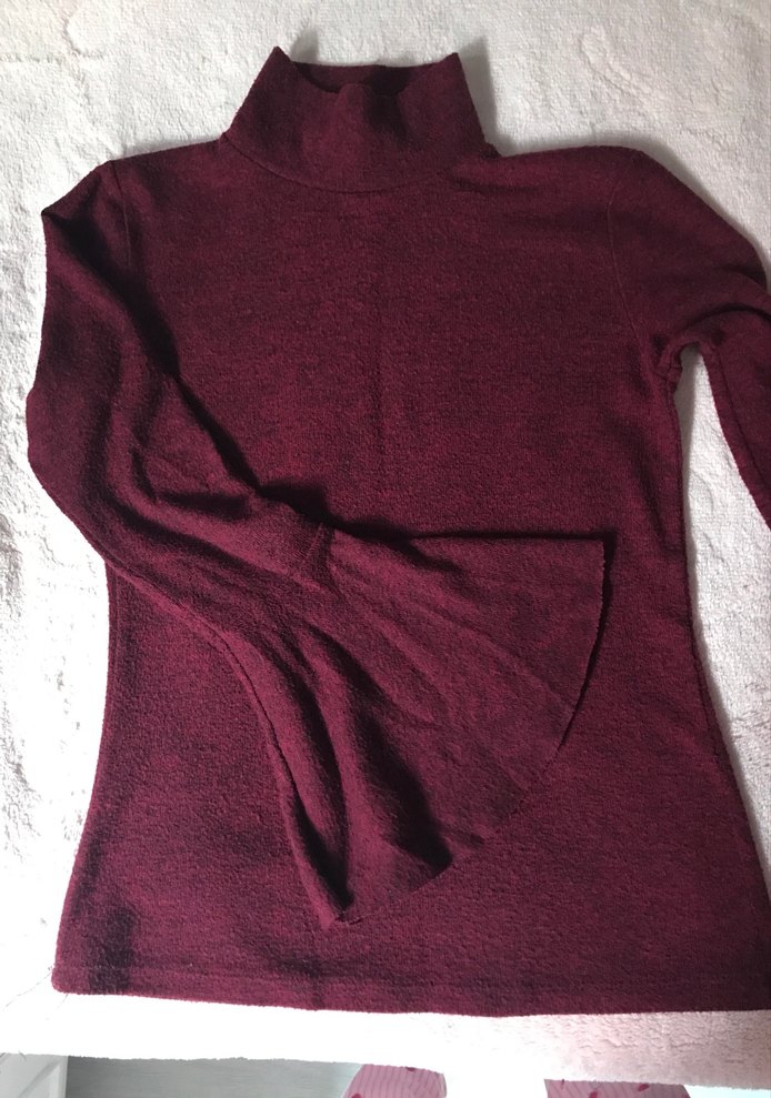 Fıt kesim, parlak bordo renkte kadın triko kazak. Balıkçı yaka ve uzun kollu, yumuşak ve sıcak kumaştan, günlük kullanıma uygun rahat ve sade tarzda.