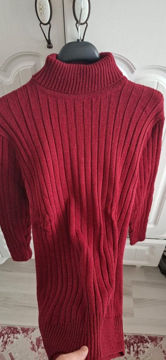 Bordo renkli, balıkçı yaka ve uzun kollu, örgü dokulu, normal boyda, dar kesim kadın kazak. Rahat ve sade tarz için uygundur.